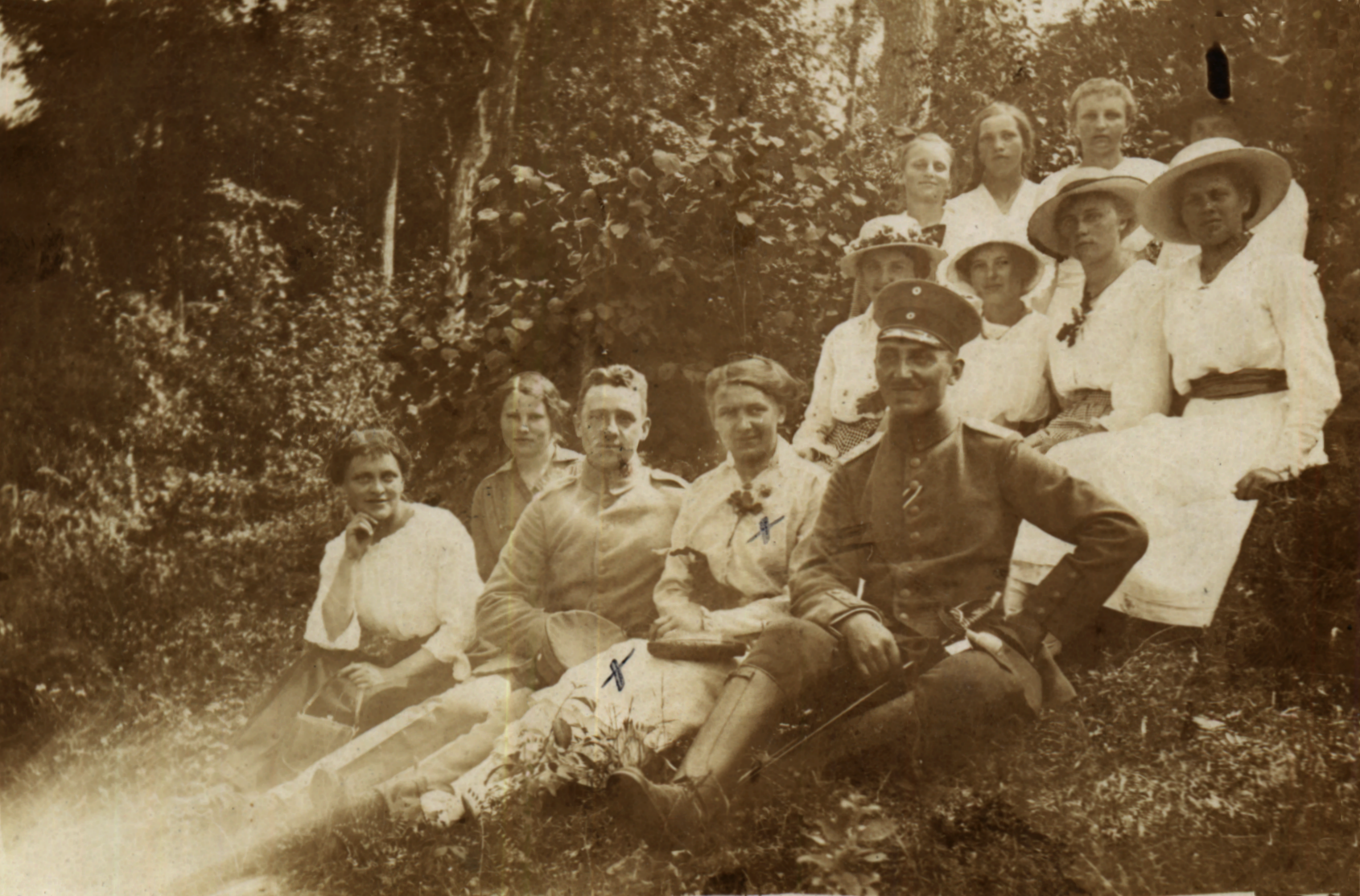 | Hedwig Bederski geb. Meier (links Kreis) Lieschen Meier (Stern) Georg Meier d. Ä. (Kreuz) Sohn von Rudolf Meier (um1907) | |||||||||||||