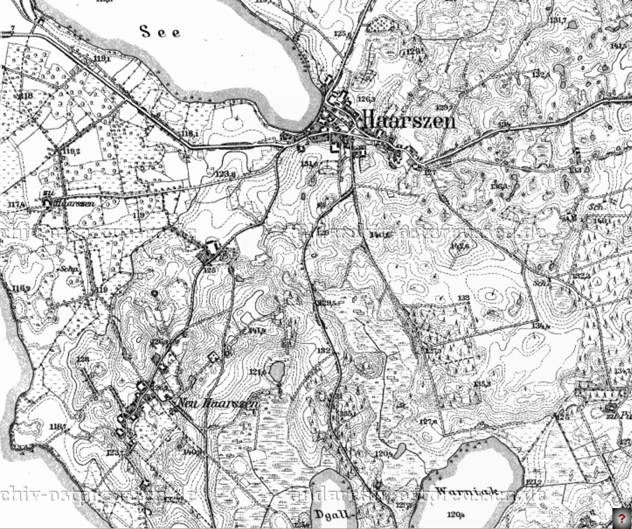 | Der Mauersee | Das Gebiet zwischen Lötzen und Haarszen | Ausschnitt Haarszen - Neu-Haarszen | Haarszen | ||||||||||
