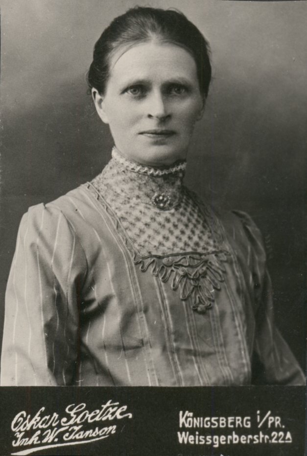 | Max Volkmann (Bruder v. Meta Volkmann verh. Bergmann) | Max Volkmann (Lehrer) (im 1. Weltkrieg gefallen) | Lydia Joswig verh Voßnacker (Cousine v. Max Volkmann) & Max Volkmann & Ella Volkmann (verh. Tarrach) (Schwester) | Ella und Meta Volkmann (verh. Bergmann) - Lydia Joswig verh. Vossnacker | ||||||||||