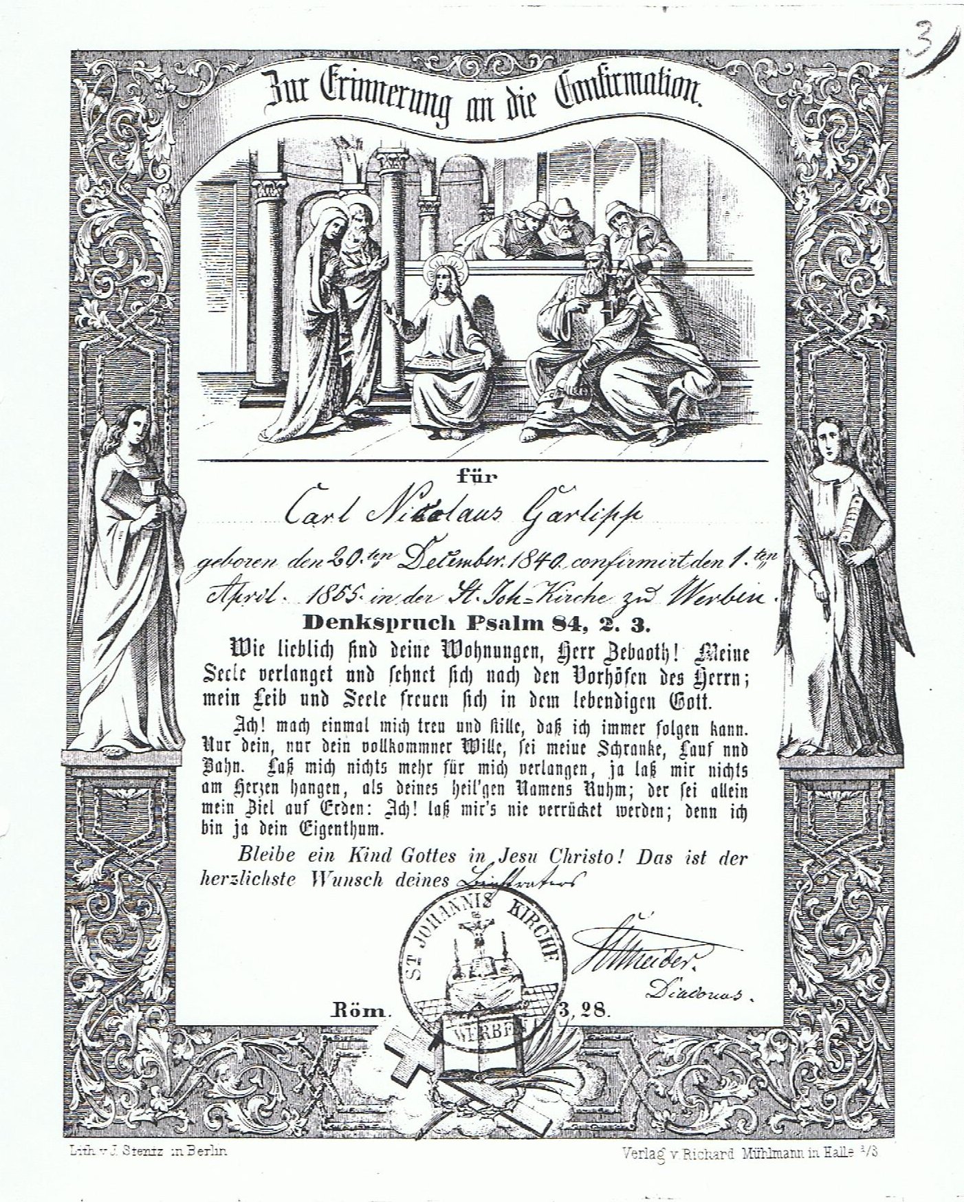 | 1841 Carl Nokolaus Garlipp Geburtsschein und Taufschein (Vater von Elise Meier) | 1855 Carl Nikolaus Garlipp - Konfirmationsschein | Karl Nikolaus Garlipp - Geburts und Taufschein | |||||||||||