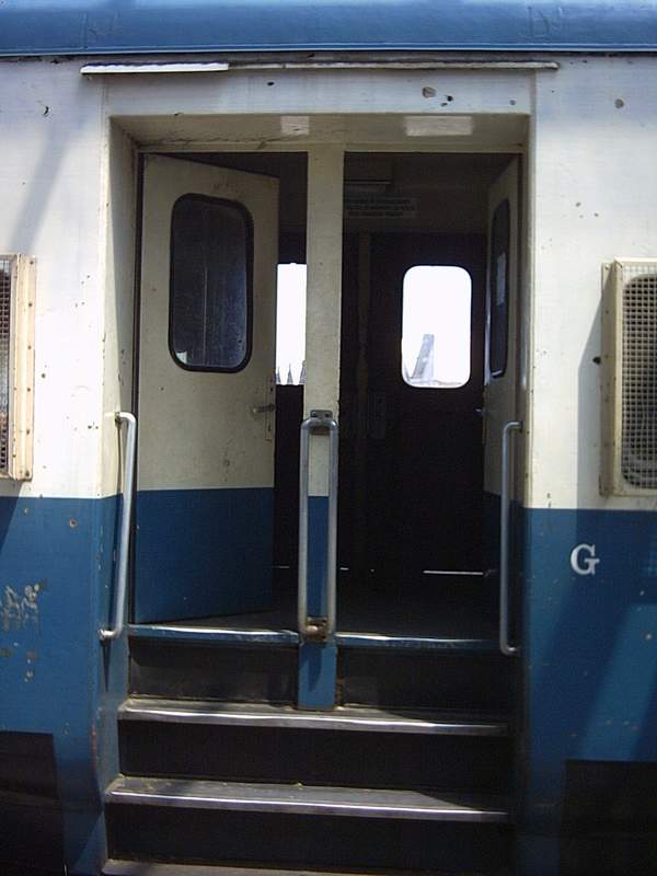 Die AFE (Staatsbahn) verwendet im Vorortverkehr die nebenstehenden Wagen mit den tiefliegenden Fenstern und den vorgebauten festen Sonnenschutz-Jalousien. |