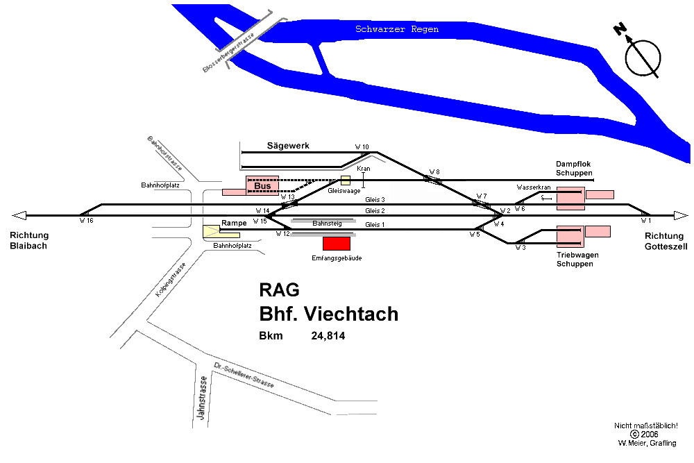 Dieser Plan ist alt. Inzwischen befindet sich oberhalb von Gleis 3 das Reparaturwerk der Regentalbahn
