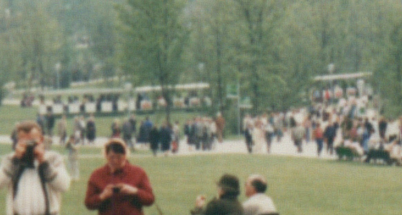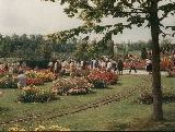 Auf den Fotos kaum zu erkennen, die Bahn auf der Münchner IGA 83 (auf Feldbahngleisen 600 mm). Man fotografierte lieber die Blumen. Auf dem letzten Bild sieht man gut die Spuren eines aus dem Gleis gesprungenen Wagens. Feldbahners Leid :-) |