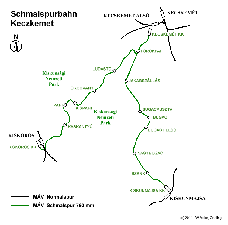2009 erfolgten Einstellung der Strecken nach Kiskunmajsa und